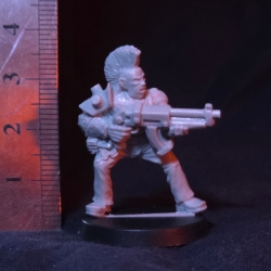 This rerelease comes with a bonus 5th figure. When making these, I lost the original Bayley sculpt. I found it again about 2 years later, at the bottom of a box. So here it is, a free bonus model. Two AK wielding punks!