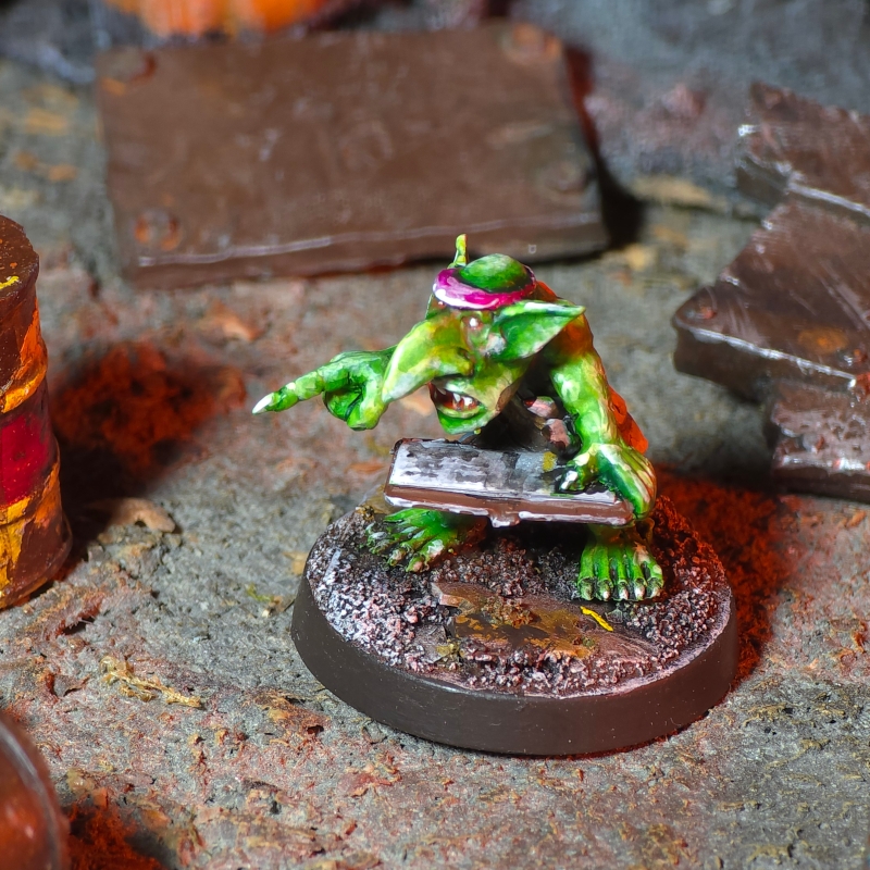 Polyurethane resin goblin model. Sculpted by Morgan Fox. May vary slightly from image shown, supplied unpainted.