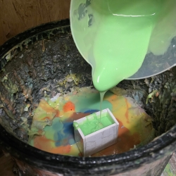 Then high quality polyester resin is poured into the mould. The process to mix, pour and set takes about 30 minutes. Any time left in the day can be spent cycling the mould every half hour.