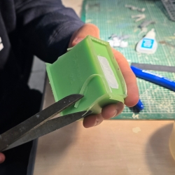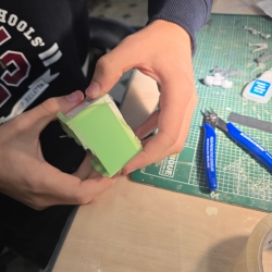 Once the model is ready, a box is built around the parts and silicone is poured over. This then takes about 2 hours to set, so this is a lunch break and free time.