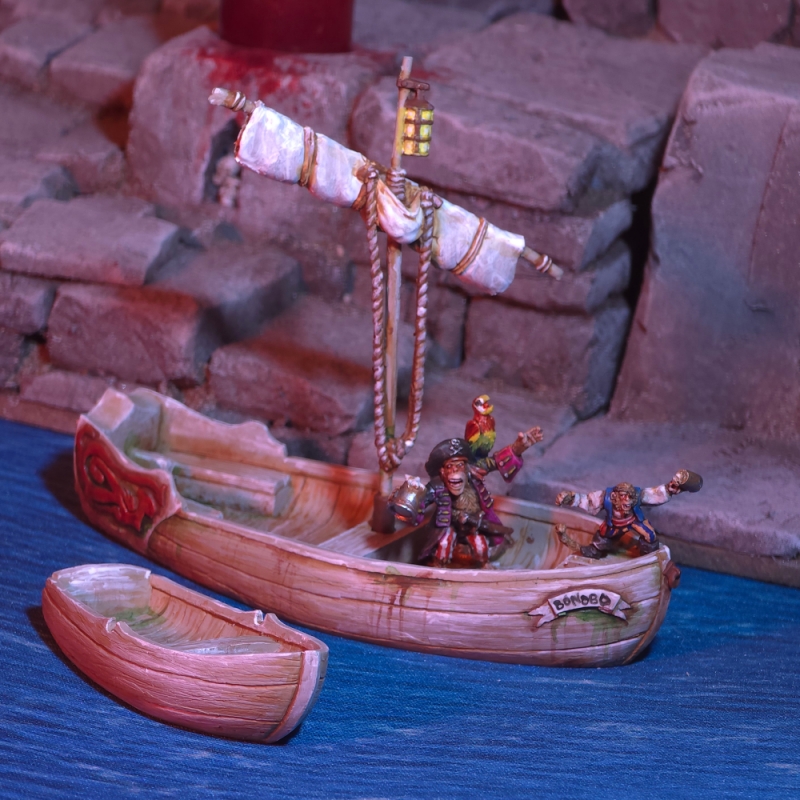 2 x resin figures and 2 jolly boats cast in high quality polyurethane resin. 28mm scale . Sculpted by Gary Morley. Supplied unpainted and unassembled. May vary slightly from images shown.